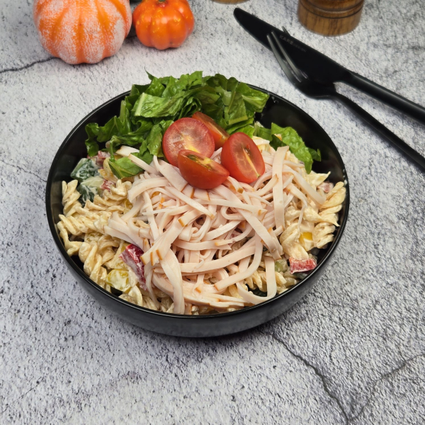 Grahamový rohlík se šunkovovou pomazánkou, zelenina